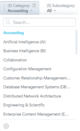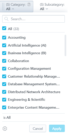 • You are drilling from the Multiple Value Dashboard to the Single Value Dashboard with the filter set to is Accounting, Artificial Intelligence . When the Single Value Dashboard opens, the first available attribute value is selected as Accounting .