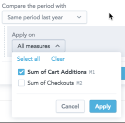 - In the Apply on dropdown, select measures that you want to compare and click Apply .